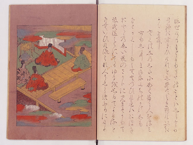 (百一段・藤のかげ)…客を招いて宴を開いた兄の行平の家で、かめに挿された藤の花を題に歌を詠む主人公。